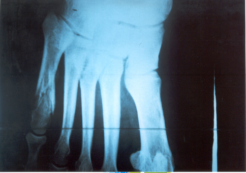 Con los años si el conflicto limitante doloroso no se ha superado hemos realizado queilectomías resecando los bordes óseos redundantes de la falange proximal y los osteofitos dorsales de la cabeza del metatarsiano en forma generosa hasta observar en forma pasiva, una dorsiflexión de 60 a 70 grados.