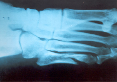 Hemos utilizado aplicaciones de laser puntual en la zona de dolor y ejercicios pasivos movilizadores y suaves de la articulación, magneto crio y por una única vez al principio,. realizamos alguna infiltración en la interlínea externa de la metatarso falángica. Sabemos que las condritis no admiten al corticoide luego entonces sólo por única vez se intentará con él, lograr una mayor movilidad de la flexo-extensión del hallux.